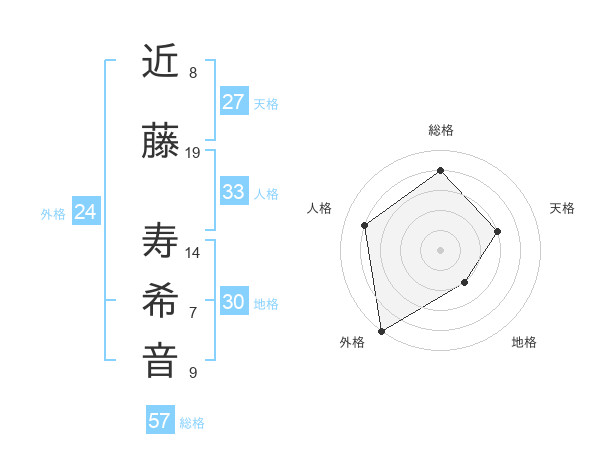近藤 寿希音さんを姓名の画数から五運を鑑定