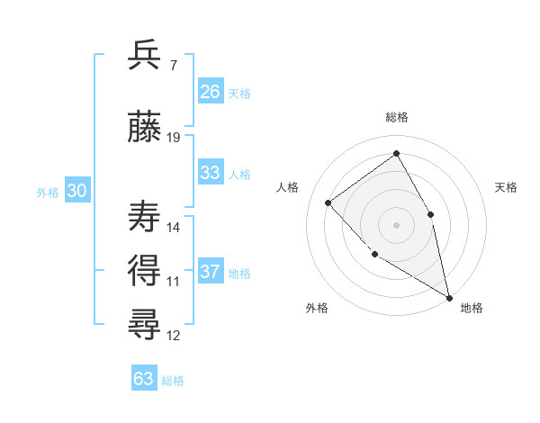 兵藤 寿得尋さんを姓名の画数から五運を鑑定