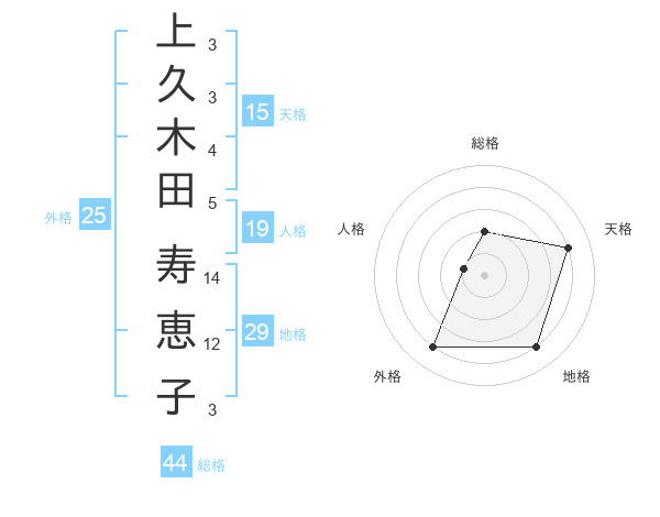 上久木田 寿恵子さんを姓名の画数から五運を鑑定