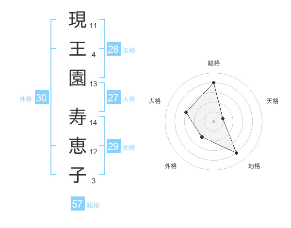 現王園 寿恵子さんを姓名の画数から五運を鑑定