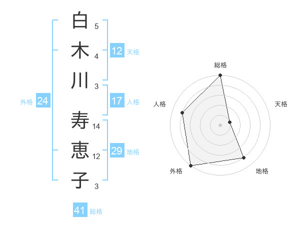 白木川 寿恵子さんを姓名の画数から五運を鑑定