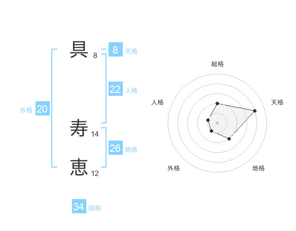 具 寿恵さんの天格は8画の4点!