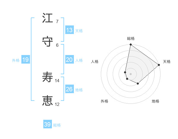 江守 寿恵さんの外格は19画の1点!