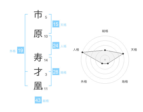 市原 寿才凰さんの地格は28画の1点!
