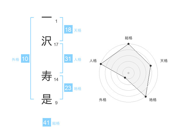 一沢 寿是さんを姓名の画数から五運を鑑定