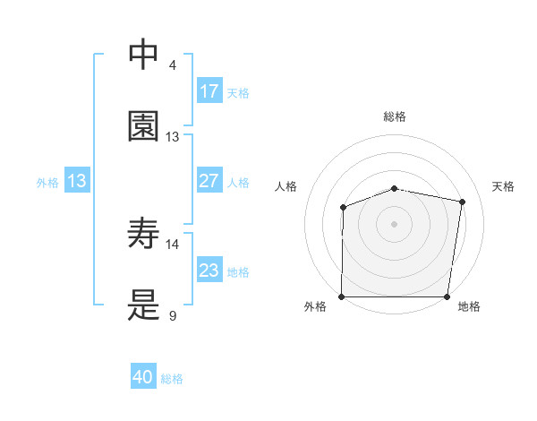 中園 寿是さんの外格は13画の5点!