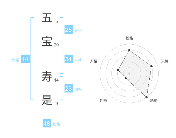 五宝 寿是さんを姓名の画数から五運を鑑定