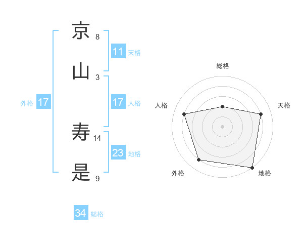 京山 寿是さんの総格は34画の2点!