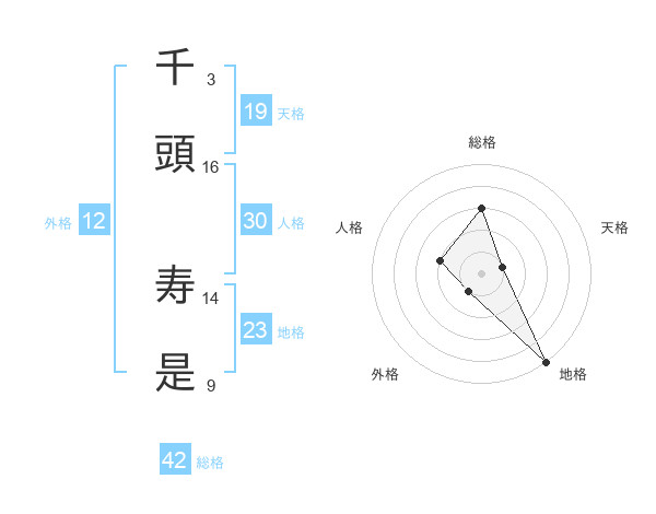 千頭 寿是さんの総格は42画の3点!