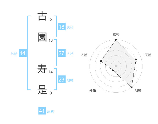 古園 寿是さんの総格は41画の5点!