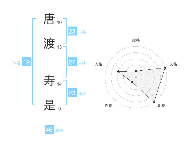 唐渡 寿是さんの天格は23画の5点!