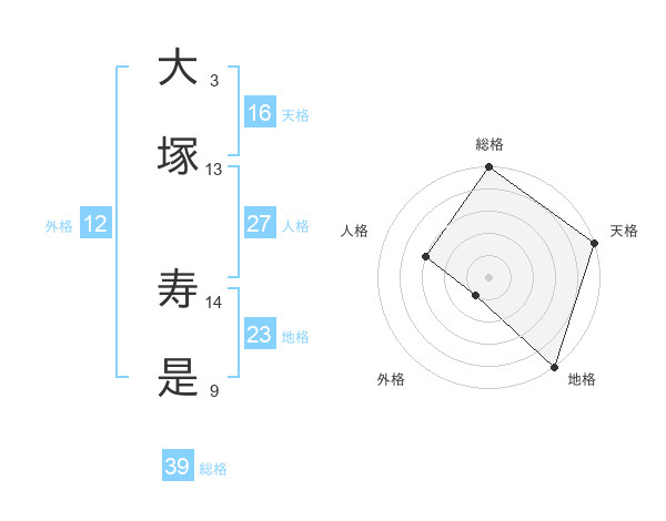 大塚 寿是さんを姓名の画数から五運を鑑定