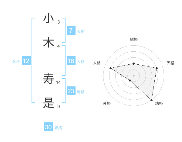 小木 寿是さんの天格は7画の4点!