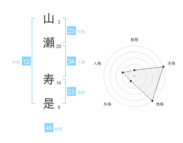 山瀬 寿是さんの天格は23画の5点!