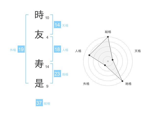 時友 寿是さんの総格は37画の5点!