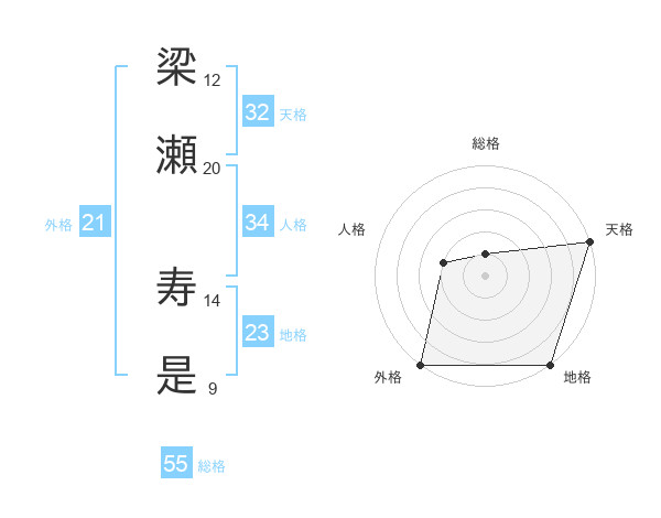 梁瀬 寿是さんを姓名の画数から五運を鑑定
