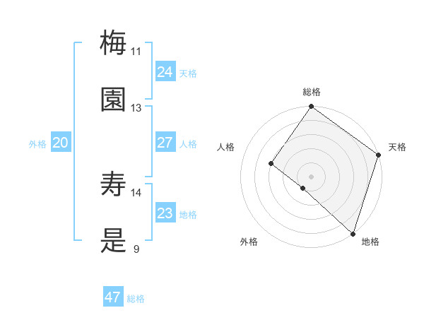 梅園 寿是さんの総格は47画の5点!