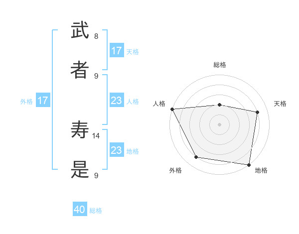 武者 寿是さんの天格は17画の4点!