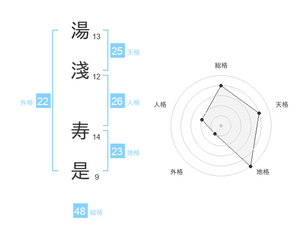 湯淺 寿是さんを姓名の画数から五運を鑑定
