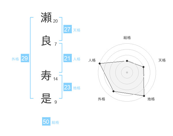 瀬良 寿是さんの総格は50画の2点!