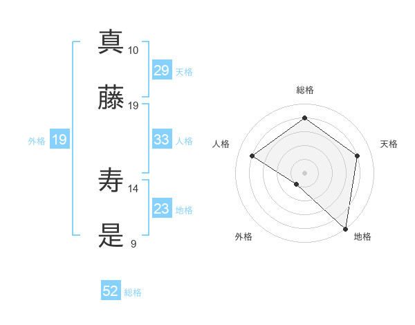 真藤 寿是さんの総格は52画の4点!