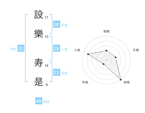 設樂 寿是さんの天格は26画の2点!