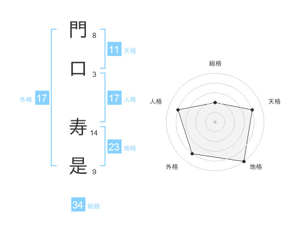 門口 寿是さんの天格は11画の4点!
