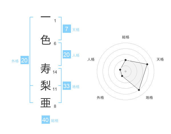 一色 寿梨亜さんを姓名の画数から五運を鑑定