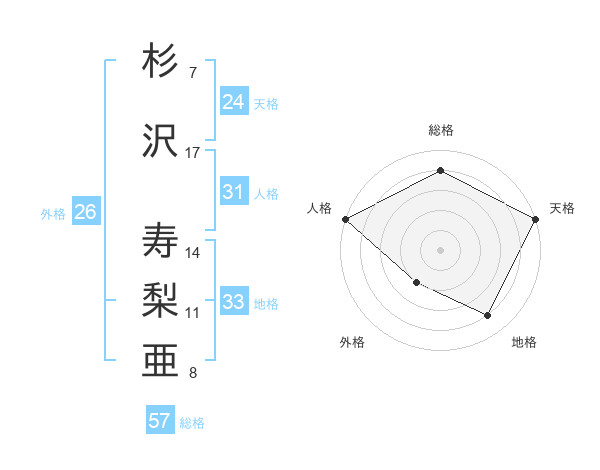 杉沢 寿梨亜さんの総格は57画の4点!