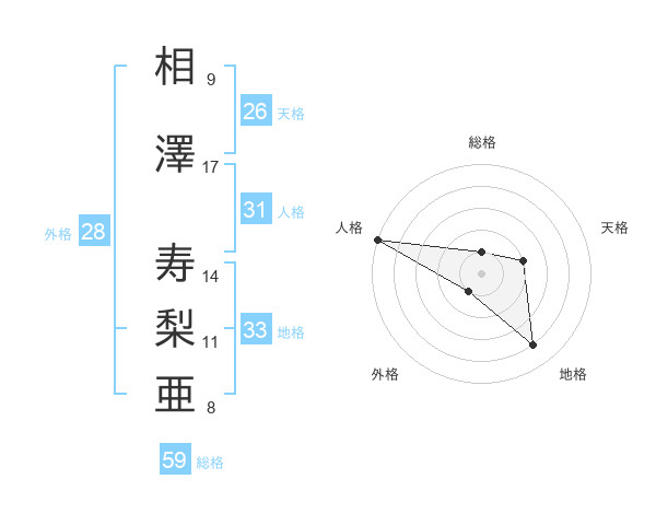 相澤 寿梨亜さんを姓名の画数から五運を鑑定
