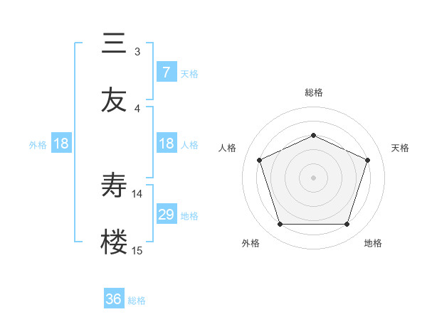 三友 寿楼さんの総格は36画の3点!