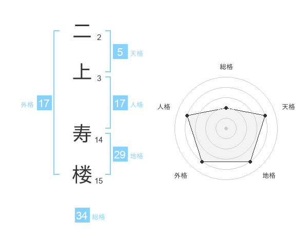 二上 寿楼さんを姓名の画数から五運を鑑定