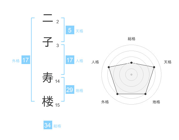 二子 寿楼さんを姓名の画数から五運を鑑定