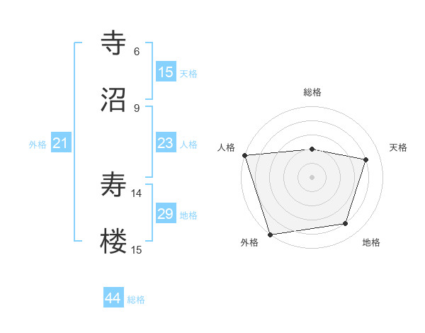 寺沼 寿楼さんを姓名の画数から五運を鑑定