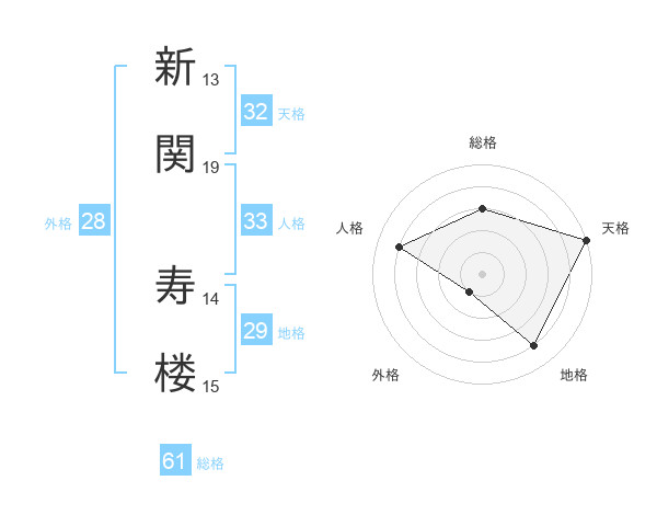 新関 寿楼さんの総格は61画の3点!