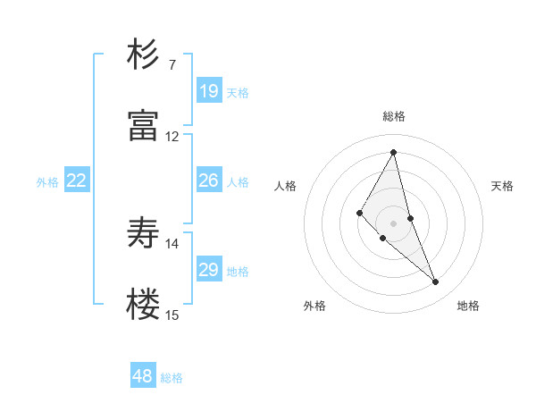 杉富 寿楼さんの総格は48画の4点!