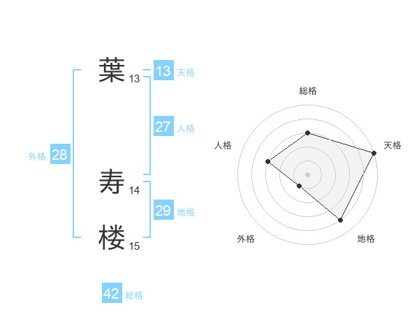 葉 寿楼さんの総格は42画の3点!