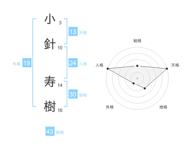 小針 寿樹さんの総格は43画の2点!