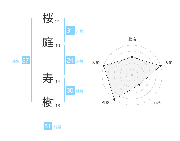 桜庭 寿樹さんの総格は61画の3点!