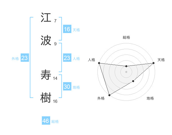 江波 寿樹さんの外格は23画の5点!
