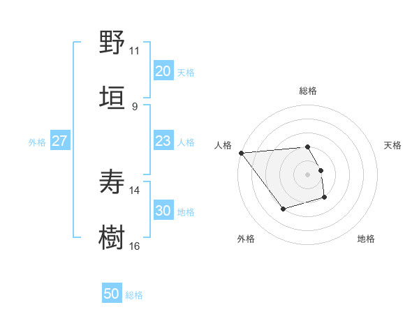野垣 寿樹さんを姓名の画数から五運を鑑定