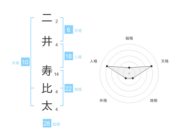 二井 寿比太さんの総格は28画の1点!