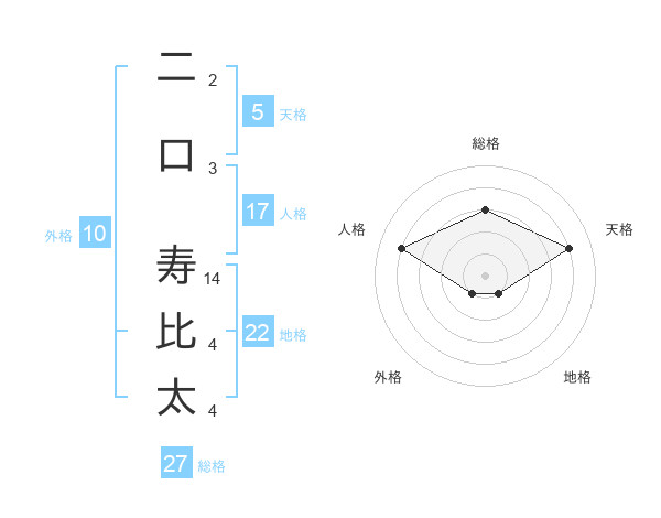 二口 寿比太さんを姓名の画数から五運を鑑定