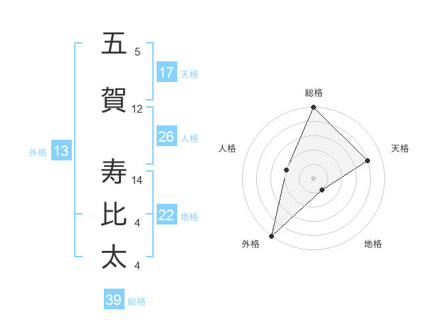 五賀 寿比太さんの外格は13画の5点!