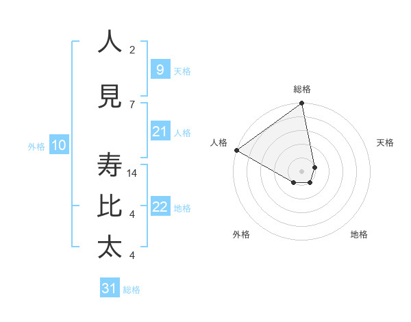 人見 寿比太さんの総格は31画の5点!
