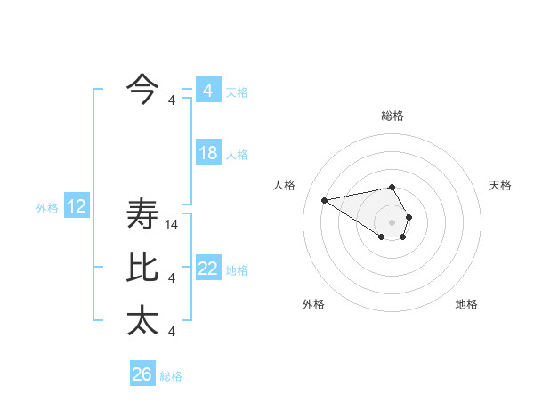 今 寿比太さんの総格は26画の2点!