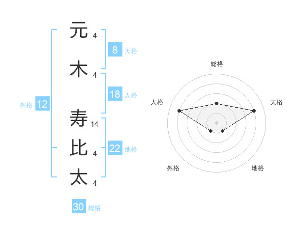 元木 寿比太さんの総格は30画の2点!