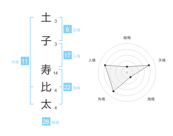 土子 寿比太さんの総格は28画の1点!