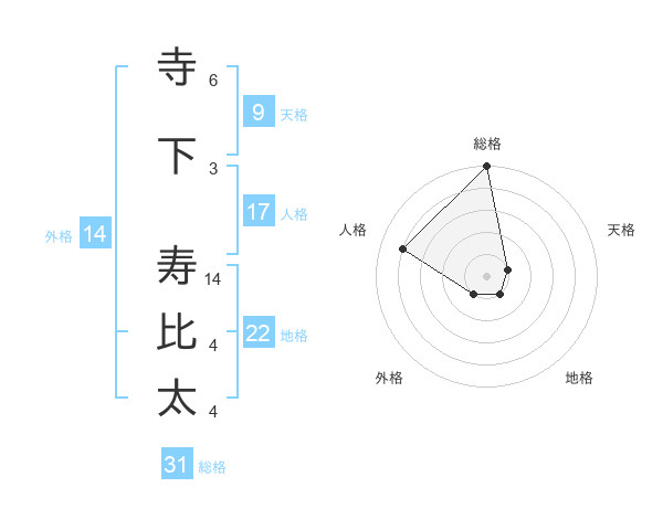 寺下 寿比太さんの総格は31画の5点!