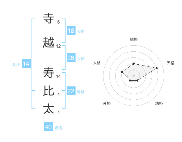寺越 寿比太さんを姓名の画数から五運を鑑定